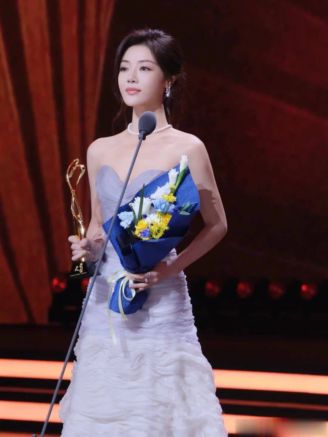 在今年的颁奖典礼上,邓家佳也凭借实力获奖,只见她一手捧花、一手拿奖杯,脸上的自信呼之欲出。